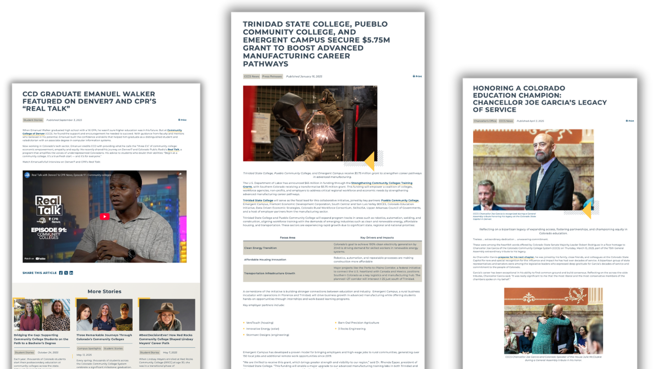 A feature focused on student success stories across the CCCS system, highlighting how career-aligned academic pathways are preparing learners to meet real industry needs in Colorado’s workforce.